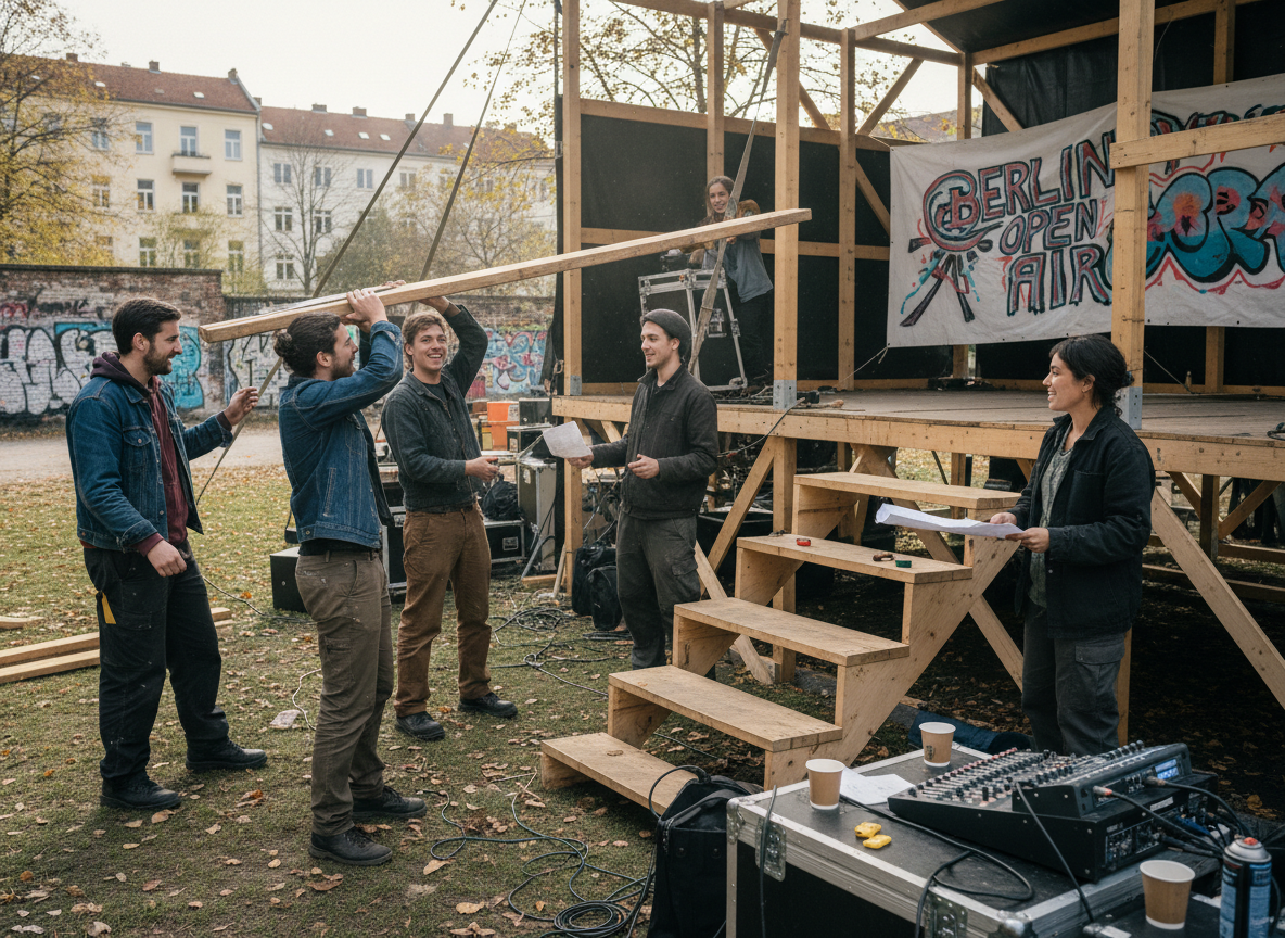Kreative Bühnendesigns aus recycelten Materialien. Ressourcenschonend, nachhaltig und trotzdem professionell. DIY-Ästhetik trifft technische Qualität.